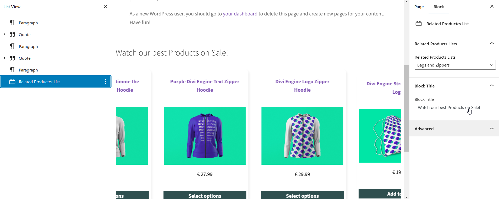 I implemented a custom plugin. It allows choosing a desired list of Woocommerce products. The products are shown using a custom Gutenberg block.